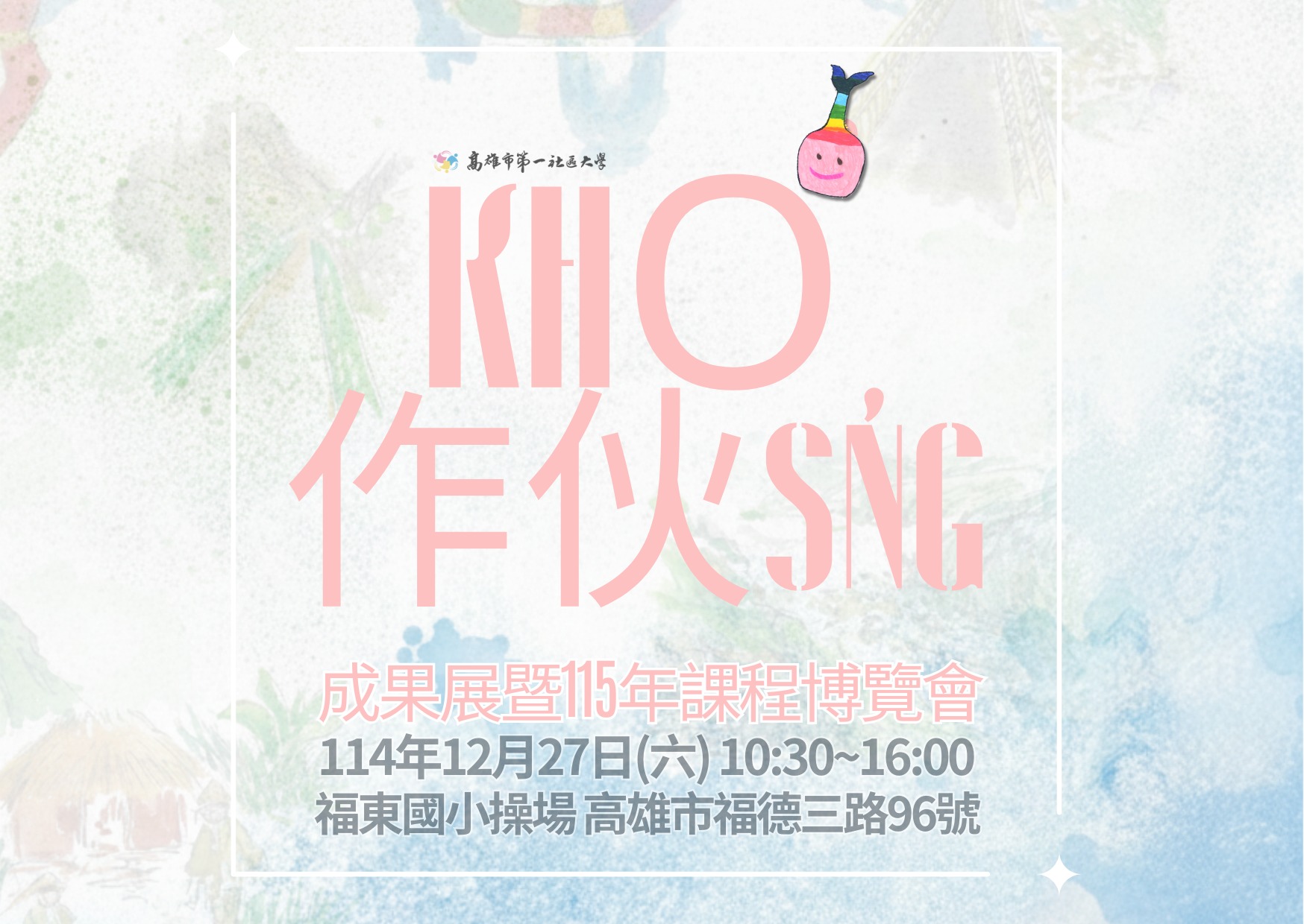 高雄市第一社區大學成果展暨115年課程博覽會【kho͘作伙‧作伙sńg】,12/27在 高雄市苓雅區福東國小舉辦,我們全力分享學習成果,向福東國小這位相挺社大的夥伴,願意共同創造學習價值,致上誠摯感謝。