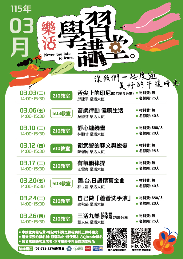 【三月份樂活學習講堂課表】